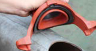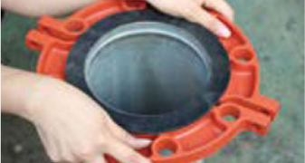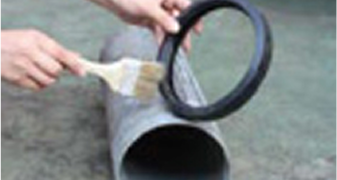 สวมประเก็นยางเข้ากับท่อที่เตรียมไว้ ไม่สวมทับร่องกรู๊ฟ โดยให้ปลายท่ออยู่บริเวณกึ่งกลาง ของประเก็นยาง