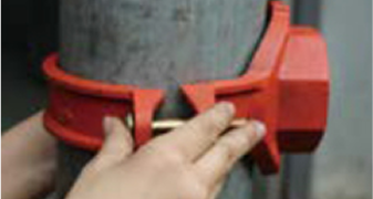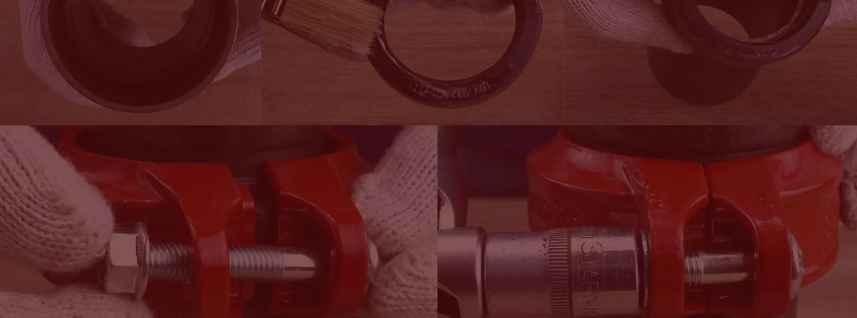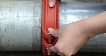 ประกอบ Coupling ทั้ง 2 ส่วน ครอบทับประเก็นยางที่ติดตั้งไว้ก่อนหน้า โดยตัวสลักจะลงระยะร่องกรู๊ฟประกบสนิทกัน จากนั้นใส่น็อคตัวผู้ลงในรูน็อตทั้ง ซ้าย-ขวา