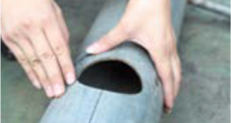 นำท่ออีกเส้นที่เตรียมไว้ มาต่อเข้ากับท่อที่ใส่ประเก็นยาง รักษาระยะให้ประเก็นยางอยู่ตรงกลาง ระหว่างท่อทั้ง 2 เส้น